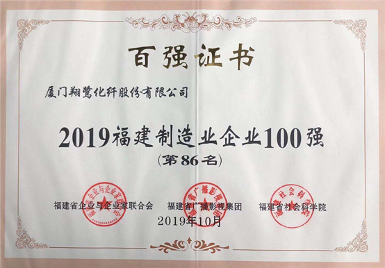 恭賀廈門(mén)翔鷺化纖股份有限公司被福建省企業(yè)與企業(yè)家聯(lián)合會(huì)、福建省廣播影視集團(tuán)、福建省社會(huì)科學(xué)院評(píng)為“2019福建制造業(yè)企業(yè)100強(qiáng)”第86名。