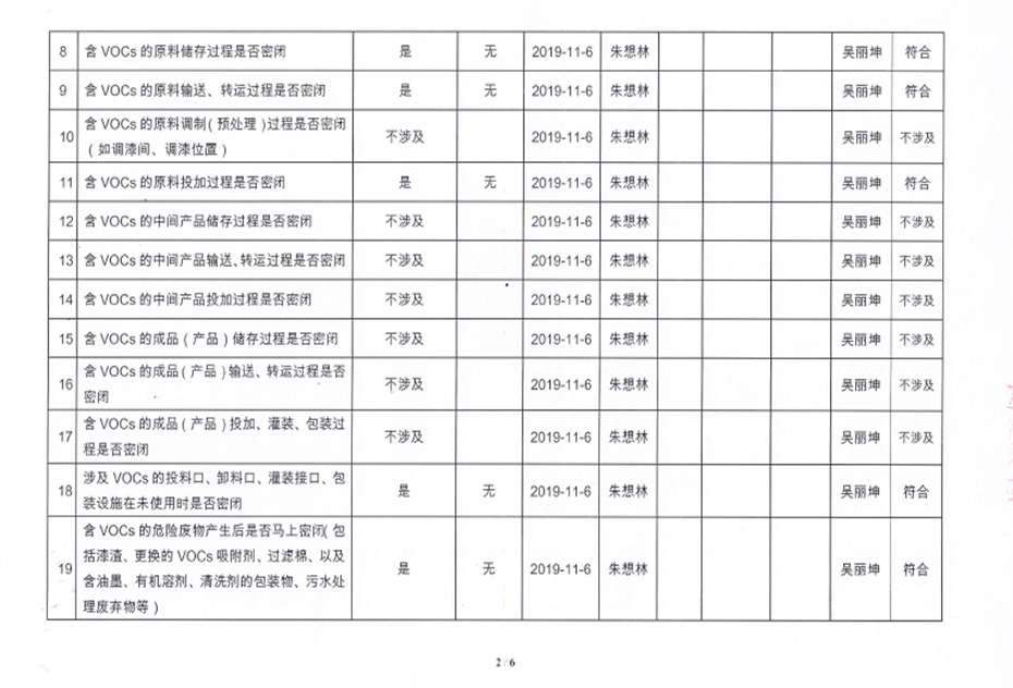 揮發(fā)性有機物污染防治企業(yè)自查表【2019(2)】