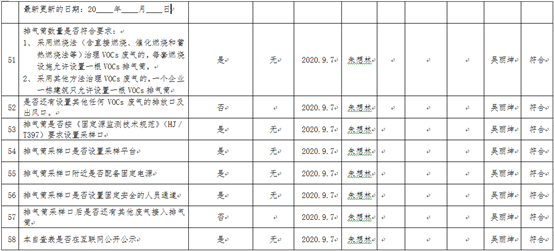 廈門市揮發(fā)性有機物污染防治企業(yè)自查表 (2020年 第三季度)