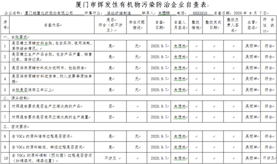 廈門市揮發(fā)性有機物污染防治企業(yè)自查表(2020年第二季度)
